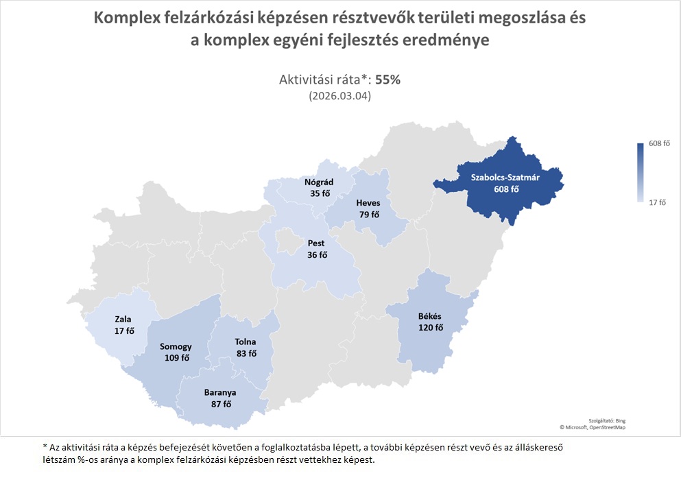 Komplex felzárkózási képzések vármegyei és regionális adatai a Komplex Felzárkózási Képzések Informatikai Rendszerének (KFKIR) nyilvántartása alapján